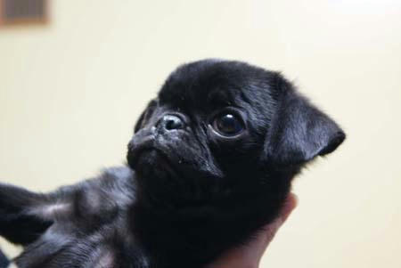 たまたまペットショップの店長さんに黒パグが欲しいと相談をしたら「ちょうど生まれたばかりの子がいるから」と見せていただきました。