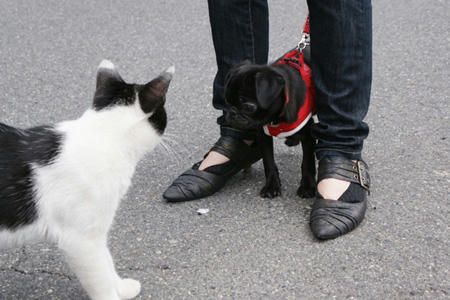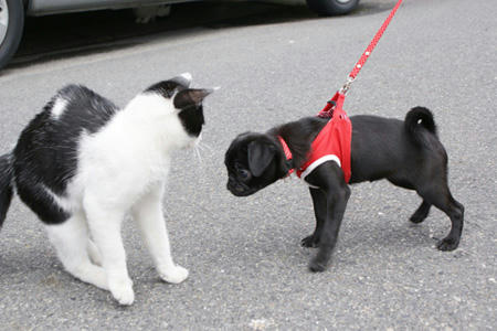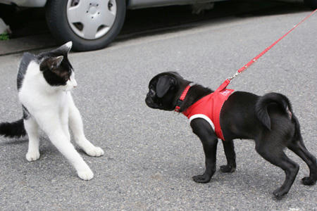突進していくのもすごいですね…パグって基本恐いもの知らずなのかしら?