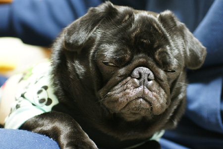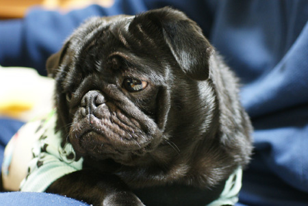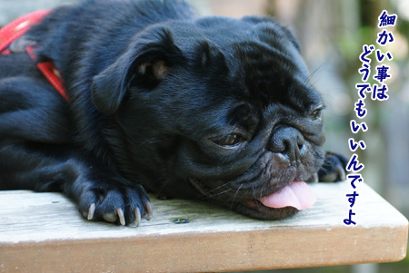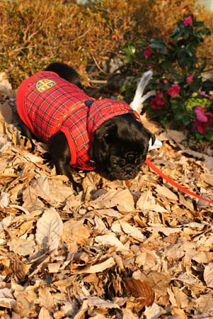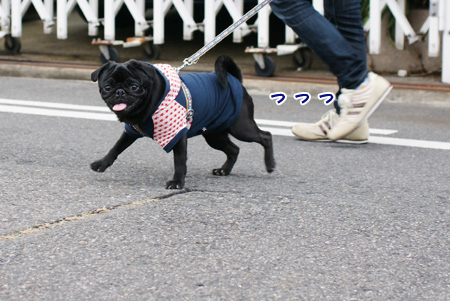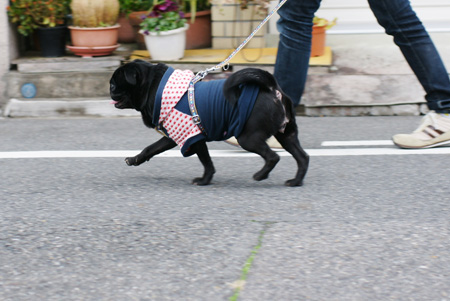 カメラを見なかった事にして、お散歩を続けるパグ。