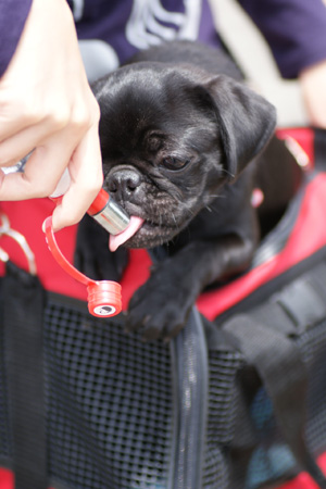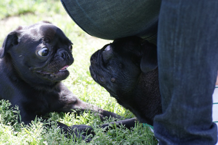 相手はまつぼっくりじゃありません、可愛い可愛い黒パグちゃんです!