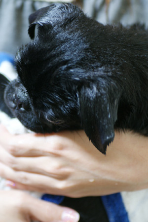 黒パグは洗うとぺとぺとになってアシカみたいになりますね。