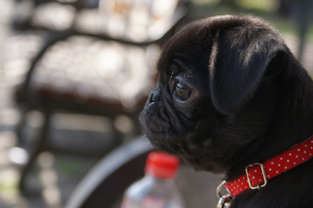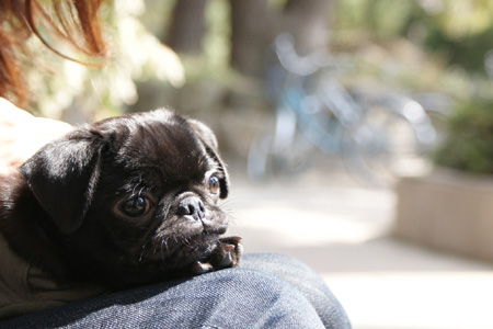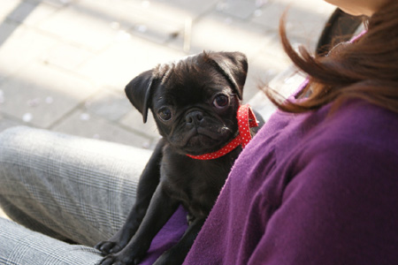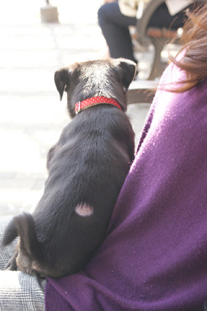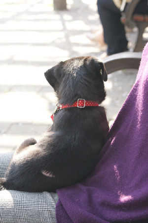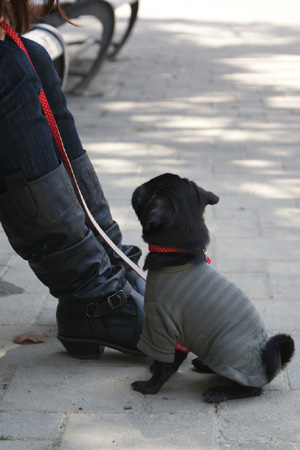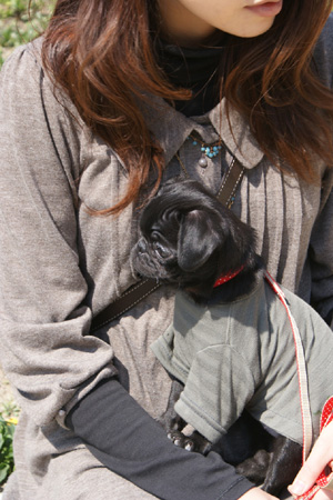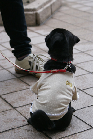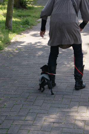 外を歩くよりも飼い主の側にいたいらしい駒子は