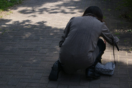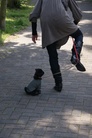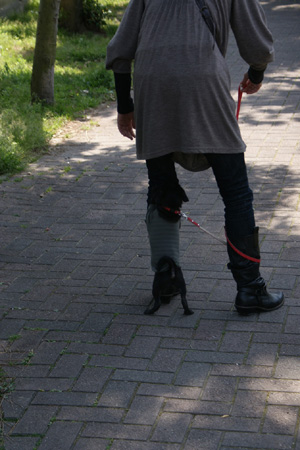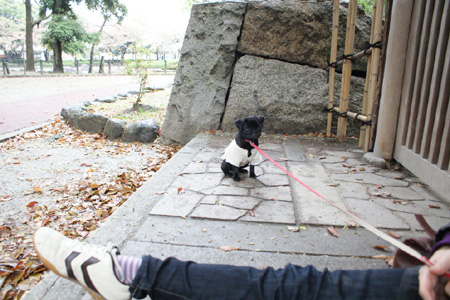 お散歩デビューはとにかく足にまとわりつく駒子に