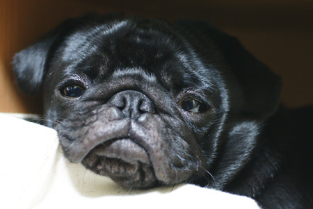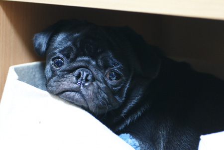 恥ずかしがり屋のパグ。