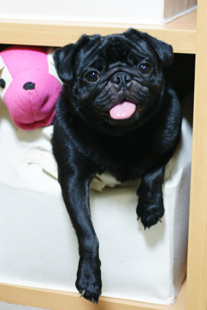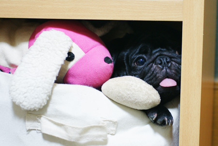 ぬいぐるみと一緒に寝たい駒子と、それを見たい飼主でした。