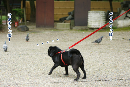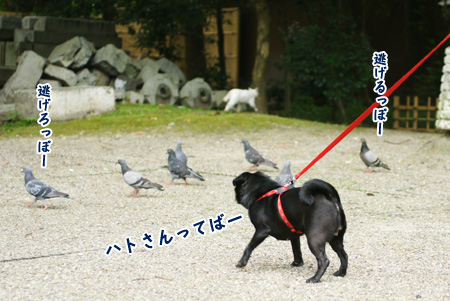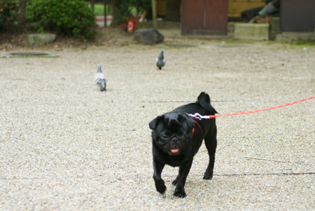ハトと、どうしても友達になりたいパグ。