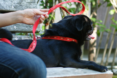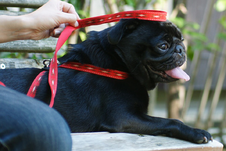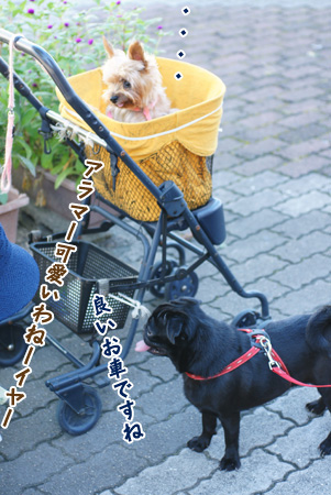 ヨークシャテリアちゃんににっこり笑いかけて、
