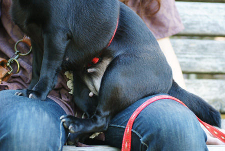 膝の上でフセました。
