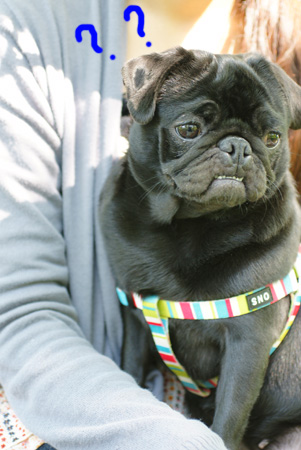 タンポポ 「ちょっとそこの黒パグさん、尻尾が邪魔よー!」