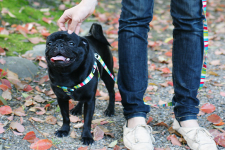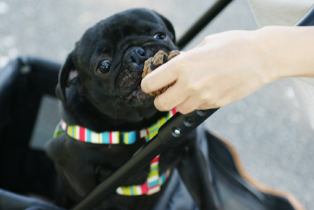 どうやら撫でられる事で、お散歩のテンションを上げているようです。
