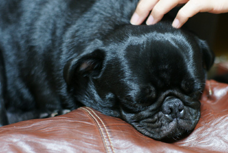撫でる手を止めたりよそ見をするとブブーっと鼻を鳴らします。
