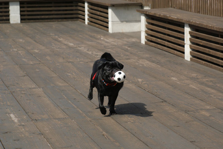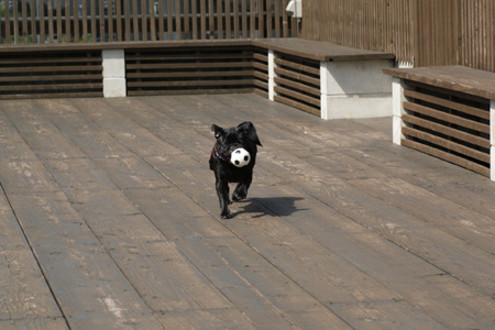 ランに通った効果からか、だいぶワンコに興味を持ってきたようです。