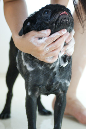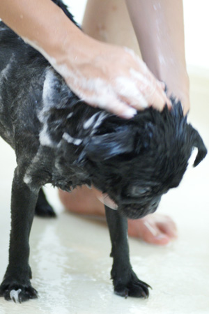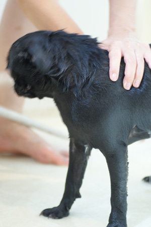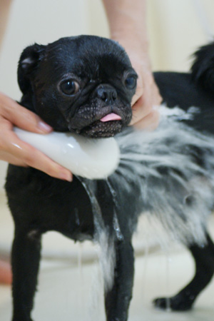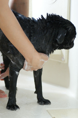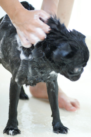 首の毛が多いので、念入りに流します。