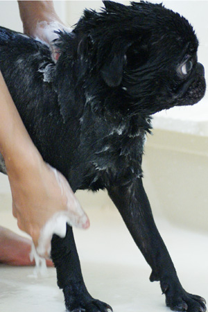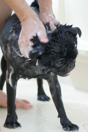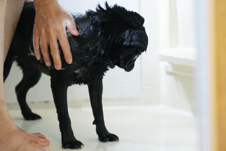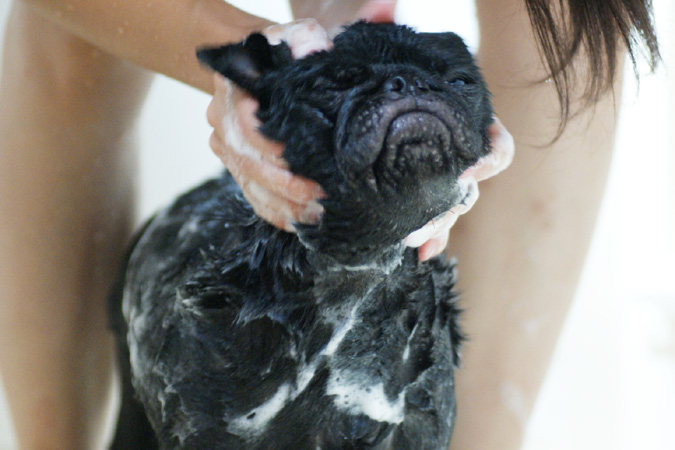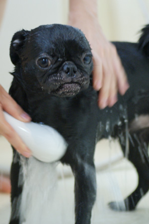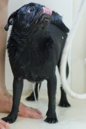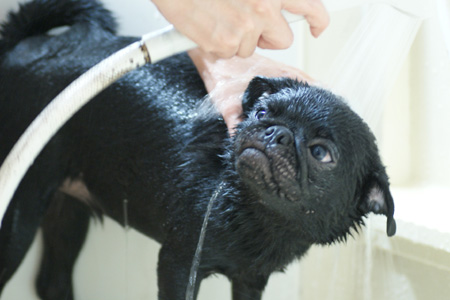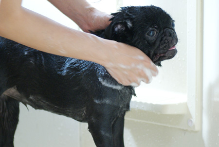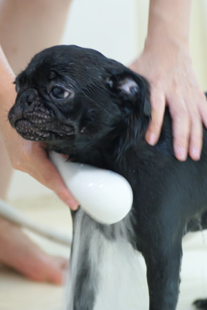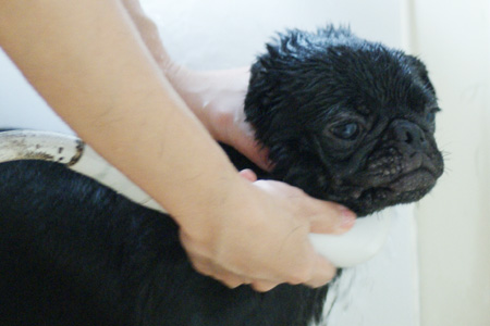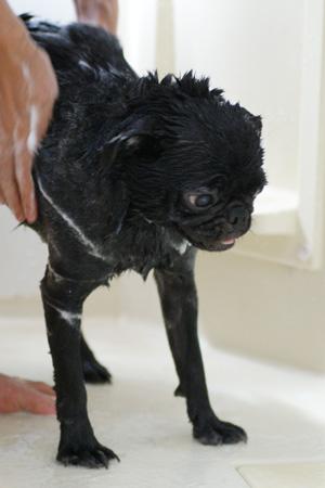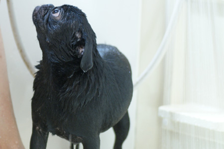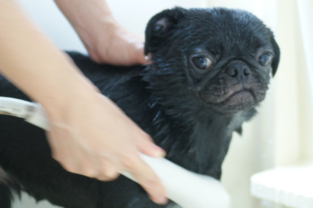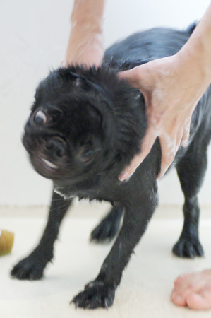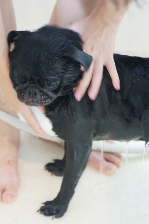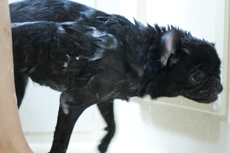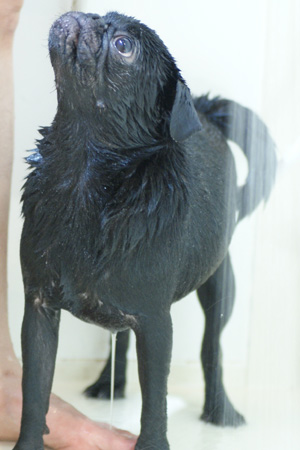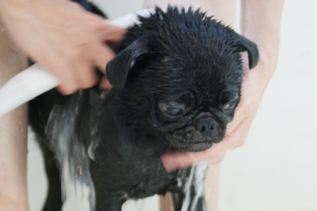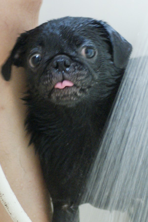 大人しくシャワられてます。