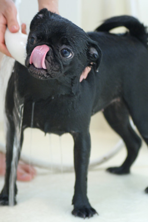 鼻についたお湯をべろん。